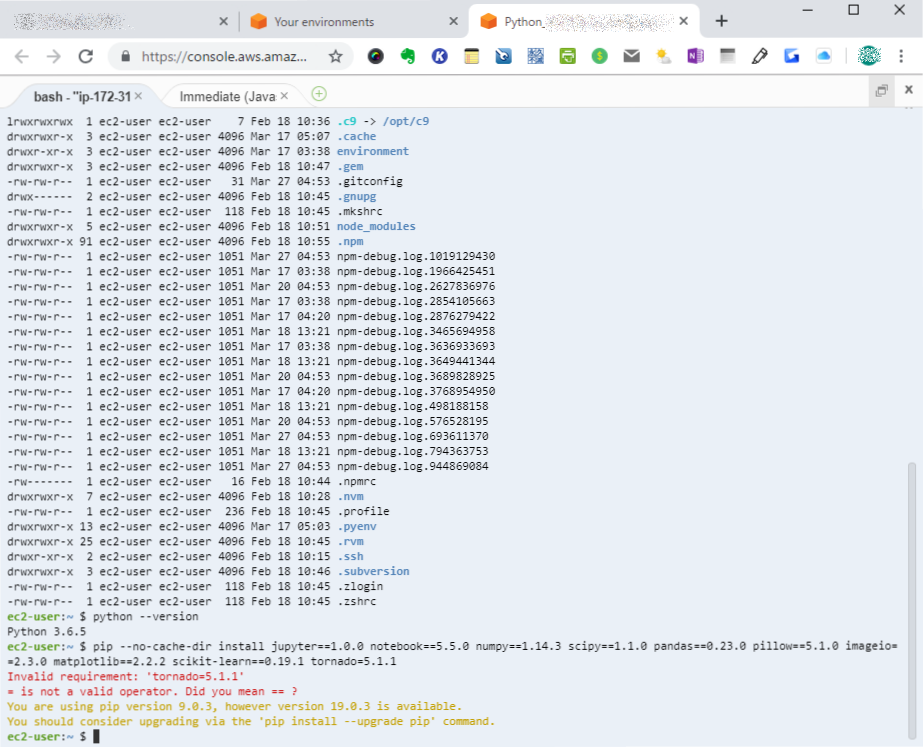 Pythonライブラリーのインストールでいきなりエラーがでました。先が思いやられますが、これでも最初からパソコンに開発環境を構築するよりは、随分楽なのです。 何と言っても勉強で使うぐらいの使用頻度なら無料枠で利用できます。