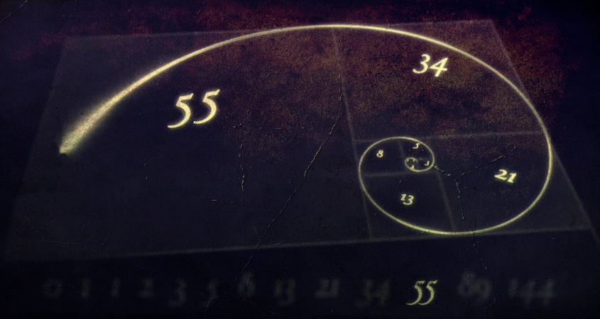 フィボナッチ数列はオウム貝殻のらせん模様や ひまわりの花びらの数 など、自然界に広く存在する数列といわれています。 その黄金比(1:1.618)は葛飾北斎 の「神奈川沖浪裏」やモナリザなど数多くの芸術作品に見い出すことができる不思議な数列です。 私も絵を描く時や映像を創る際はこの黄金比を意識しています。